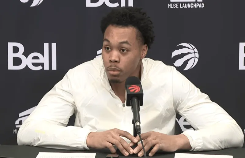 虎扑04月13日讯 今日NBA常规赛,多伦多猛龙队以136-101的比分击败布鲁克林篮网队,在赛后采访中,猛龙队球员斯科蒂-巴恩斯表达了重返季后赛的兴奋之情。巴恩斯透露,虽然自己对于这场锁定排名的关键战感到非常紧张甚至失眠,但在场上他成功通过防守和寻找错位机会保持了高效。他强调,球队从训练营开始就坚信能够达到今天的位置,并对全队在赛季起伏中展现出的韧性感到自豪。